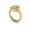 Evoke the aesthetic of the flamboyant Art Deco era with this emerald-cut centerpiece, accentuated by a frame of delicate stones. A timeless piece that captures the bold glamour of the 1940s with a touch of modern finesse.